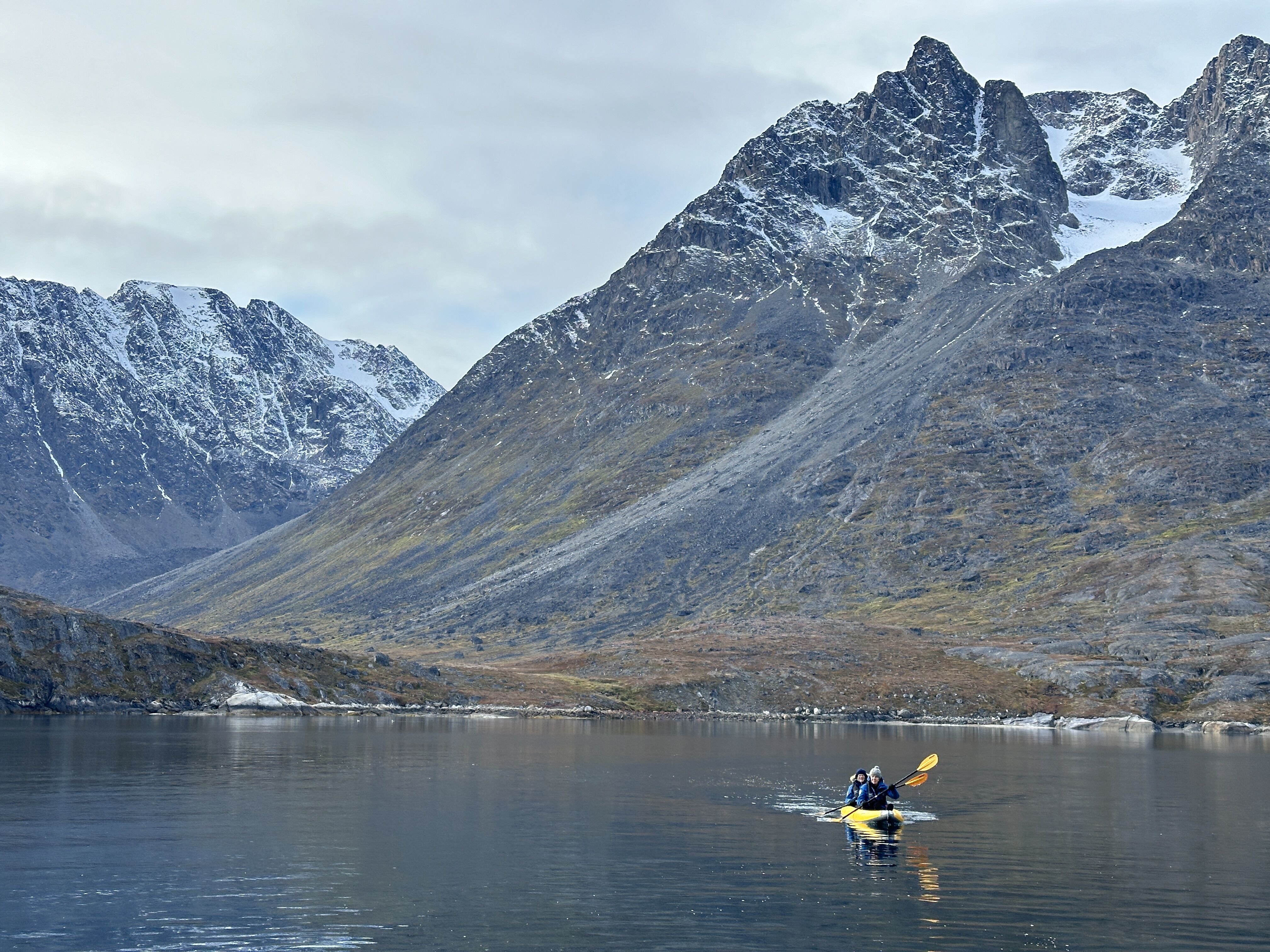 After having spent a pleasant night in the large Buchanan Bay, we spent some time waiting for the fog to dissipate in Alexandra Inlet on the southeast coast of Ellesmere Island. Eventually, National Geographic Endurance entered the open waters of Smith Sound on her way to Greenland. “Open” is a relative term in this part of the world, as extensive areas were covered by sea ice. We all enjoyed admiring the ship’s superb ability to navigate in such conditions. It was particularly interesting to witness the formation of new layers of ice over the ocean as temperatures lowered during the past couple of days. Countless photographs and videos were taken as the ship maneuvered around the ice, and we never tired of admiring the sheer beauty. We saw several ice floes marked by large tracks and eventually found the indisputable king of the north, a polar bear! What a great way to say goodbye to the Canadian Arctic.