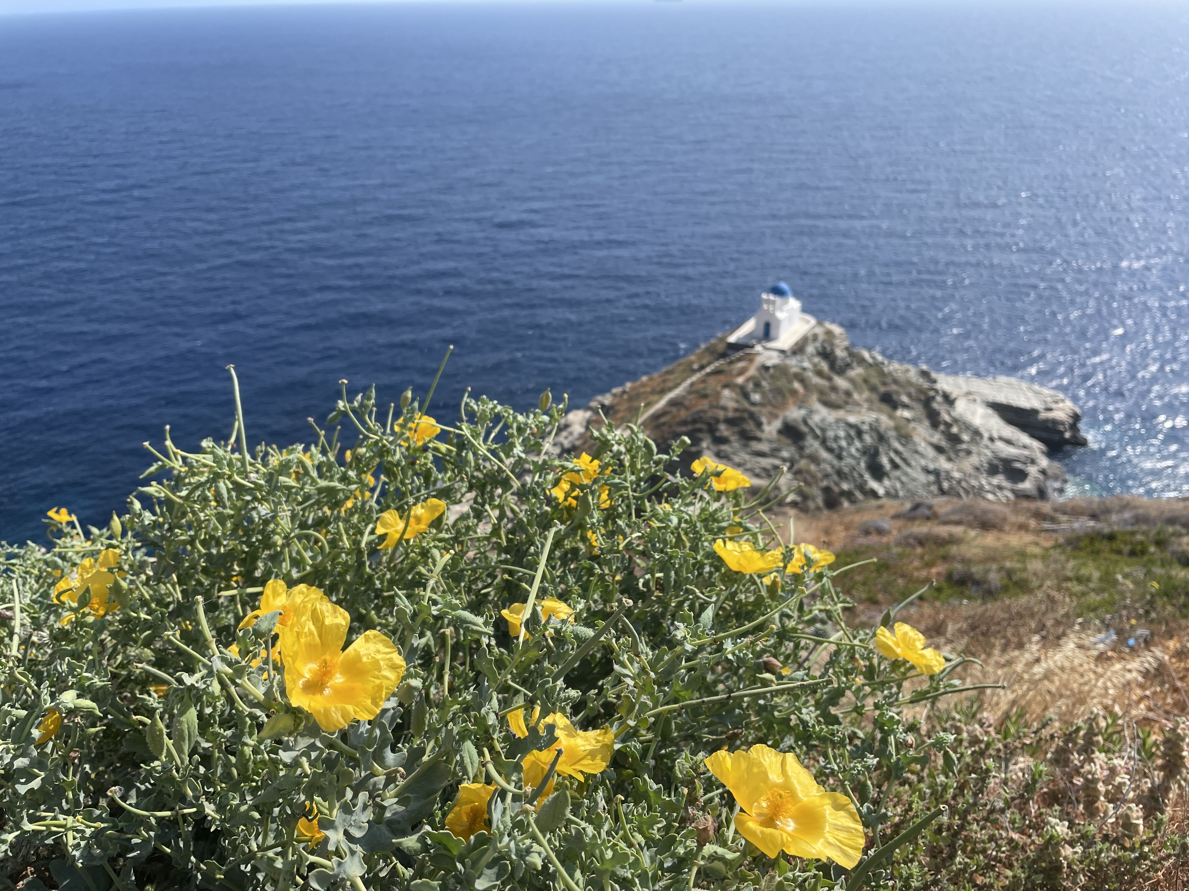 Early this morning Sea Cloud arrived to the Amorgos Island, the most remote of the Cycladic Islands. After a splendid breakfast in the dining room, we all gathered by the gangway eager to disembark at the town of Katapola. After a short scenic drive up and over to the other side of the island we visited the 11th century monastery of Panagia Hozoviotissa, built in honor of the Virgin Mary. As we slowly climbed the 300-plus steps to reach it, we were truly impressed by the location chosen for its construction. The white, eight-story building of this monastery literally hangs from the side of a very steep rocky cliff. After visiting the monastery, we got back on our private bus to backtrack to the hilltop Chora (town), to continue exploring by foot, the narrow, old, stone walkways. We were pleasantly surprised to find after every curve a beautiful, picturesque little café or restaurant. Each one more beautiful than the previous!