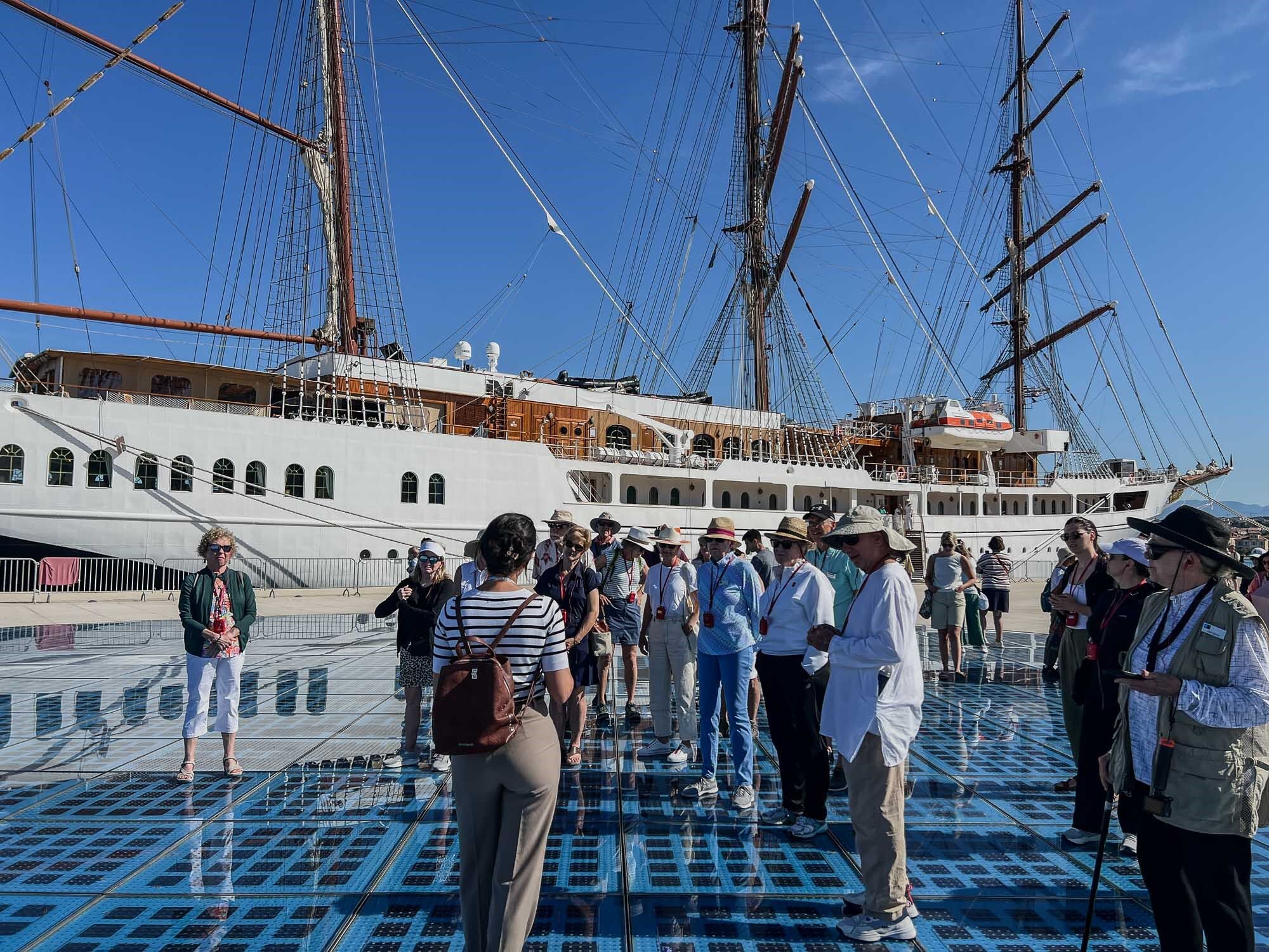 In the afternoon, we dropped anchor near the Blue Lagoon and had the opportunity to swim or Zodiac around the local island group. To our surprise, the bar team had set up an unexpected floating bar, serving ouzitos (a mix of ouzo and mojito!). The most intrepid of the group enjoyed a swim in the shallow, clear waters before returning to National Geographic Orion for the captain’s welcome.