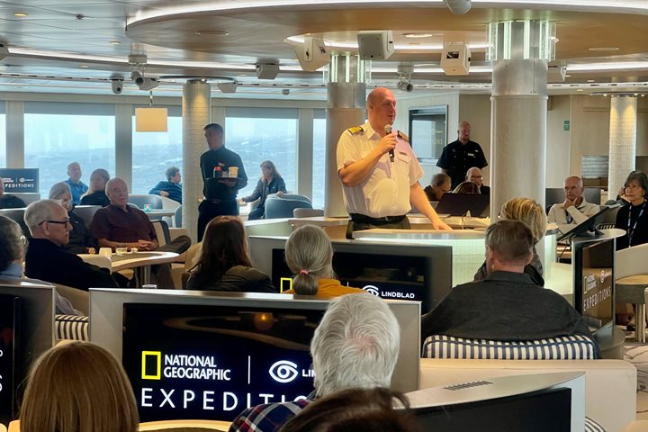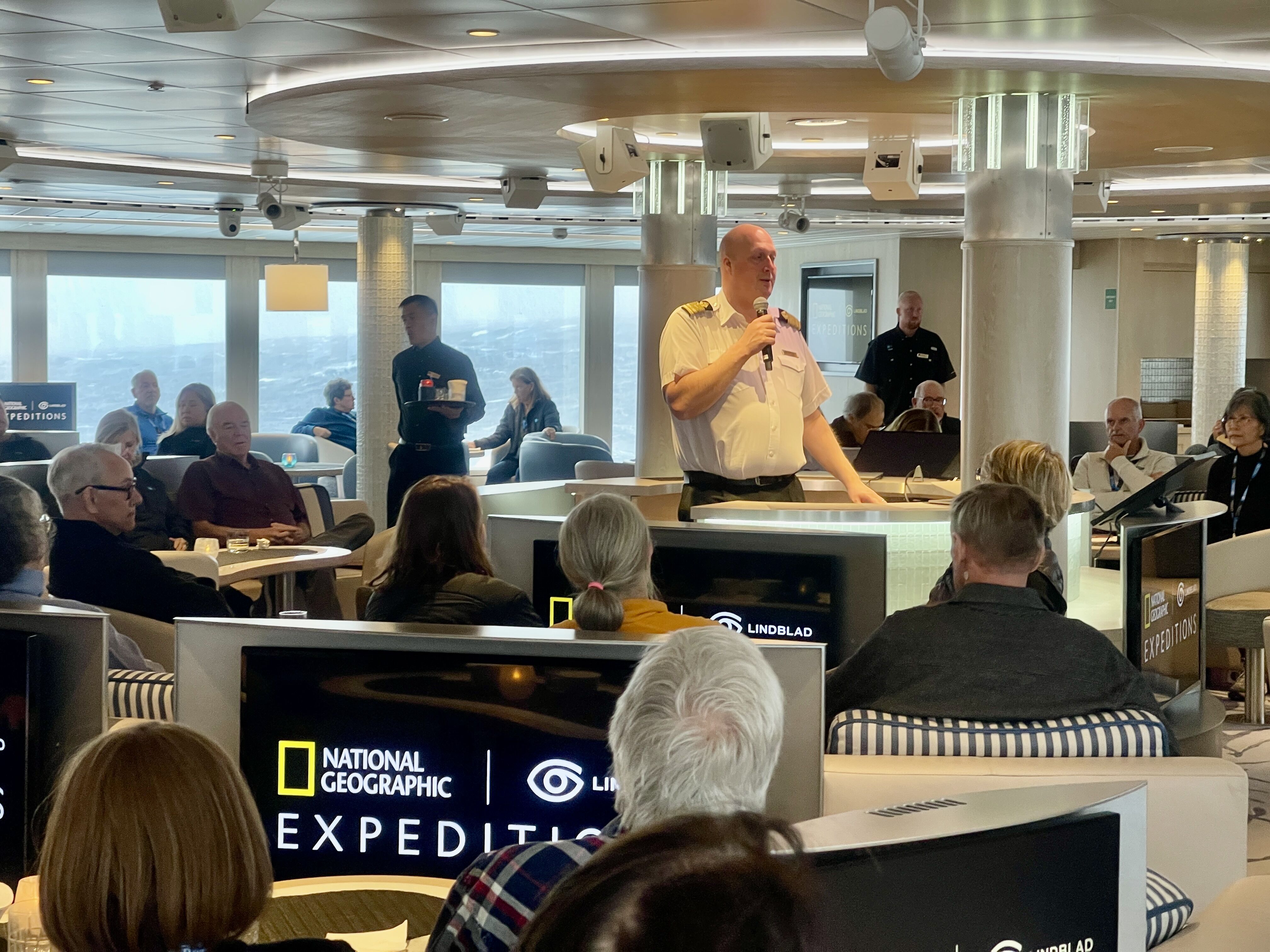 Today aboard National Geographic Endurance, we cruised to our first destination of the day, Astrolabe Island, for a Zodiac cruise. The island is home to over 3,400 pairs of chinstrap penguins and hundreds of Antarctic shags. Everyone was excited to find that Adelie and gentoo penguins could also be spotted, along with Weddell and crabeater seals. An arched iceberg was seen in the distance, and Captain Aaron Wood maneuvered National Geographic Endurance so everyone could get a closer look at this stunning piece of ice. Fortunately, our exploration of Astrolabe Island was completed just in time, as the winds started to pick up, making for a spotty return to the ship. Unfortunately, the winds altered the afternoon plans, but thanks to the amazing initiative of Expedition Leader Andy Wolff, we were able to visit Whalers Bay. After walking around the historic whaling station, everyone made it back to the ship just in time for cocktail hour and recap, where our Global Explorers presented the undersea video they took using the remote operated vehicle (ROV). And last, but certainly not least, the ship celebrated three birthdays at dinner, including Naturalist/Photo Instructor Jim Pfitzer!