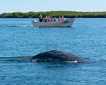 Upon returning to the vessel, we had lunch and regrouped for another round of whale-watching. As we boarded pangas, the excitement was palpable. This time, we observed more displays of males showing off for female attention. We spent another two hours with these beautiful animals. As the golden hour fell, we saw whale blows all along the horizon. With full hearts, we sailed back to National Geographic Venture for an incredible BBQ set up on the sundeck. As the sunset displayed brilliant colors along the horizon, we ate and drank as we reminisced about our truly remarkable trip. This has been a beautiful trip with so many incredible experiences.