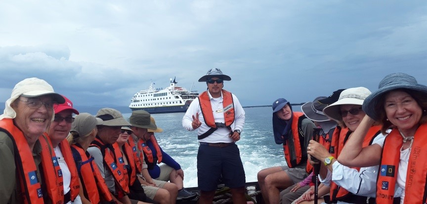 Today we woke up in the most western region of the Galapagos and we had different activities planned: Zodiac riding, hiking, and snorkeling. The day was great, and we knew it was just going to get better and better since we were going to have our BBQ dinner and were headed to witness a spectacular event at Fernandina Island, the eruption of la Cumbre Volcano. La Cumbre is the youngest volcano in the archipelago and one of the most active ones worldwide. This particular eruption started a month ago, but it was only this past Sunday that the lava reached the ocean, putting on an amazing show. We could see the rivers of lava flowing, the sparks flying, and the huge waves solidifying the lava. We could hear it cooling and the new rocks rolling, the force of nature at its maximum splendor. It was breathtaking!!!