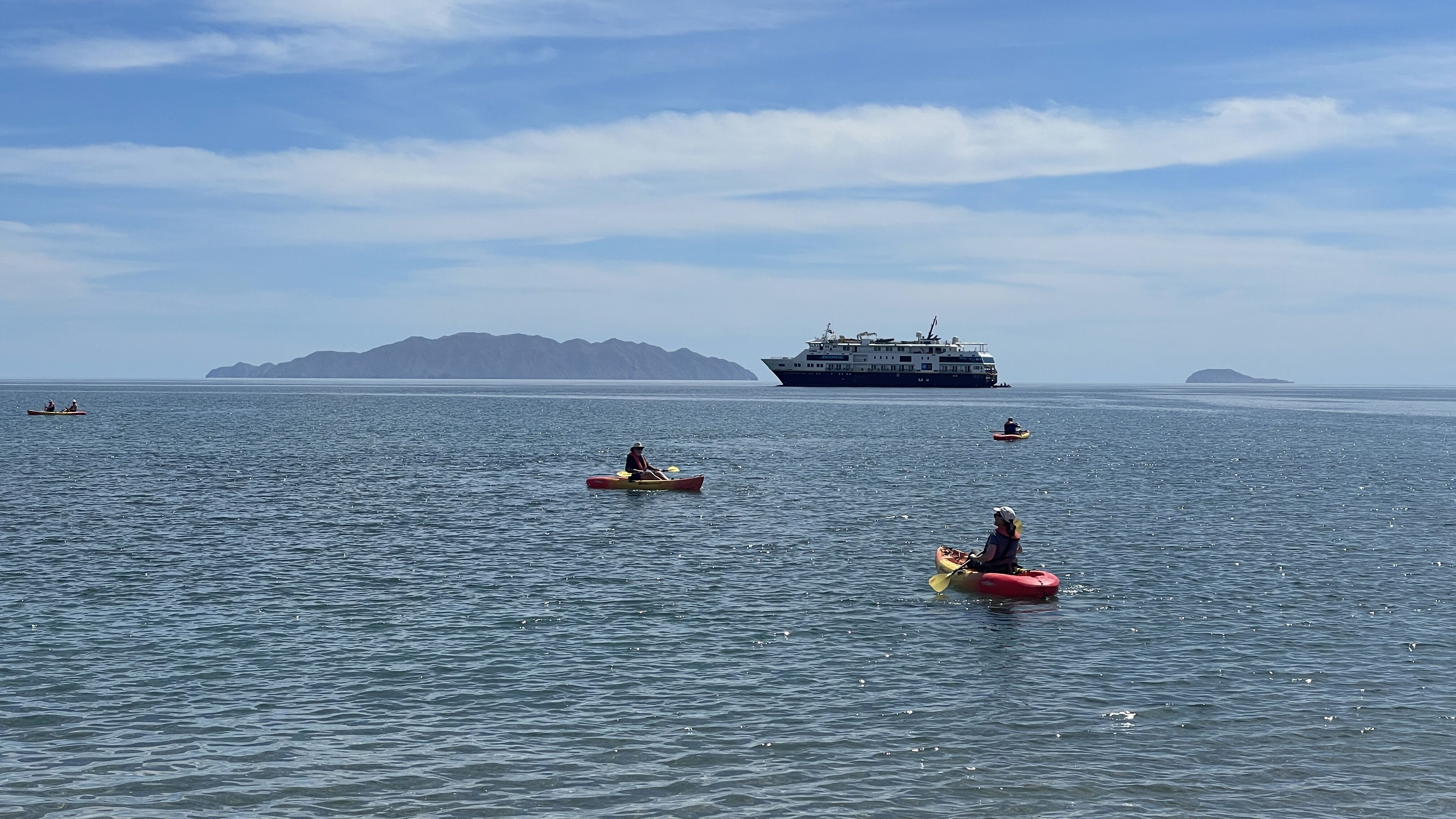 The day began with a green flash as the sun rose over the Gulf of California. We awoke early to take advantage of our time in the National Marine Park of Cabo Pulmo, either snorkeling or on a scenic cruise. Those who decided to adventure into the marine park transferred from our expedition landing crafts to local pangas. Snorkelers spotted a wide variety of fish and corals in several locations. Cruisers were enamored with the sea lions lounging on a large rock as well as a variety of birds.