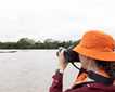 Early in the morning on our last day in the Amazon, we enjoyed a skiff ride at Nauta Creek to catch a glimpse of king fishers, terns, and many raptors including the photogenic black-collared hawk. Nauta Creek’s black water is surrounded by a forest of large trees that happen to be home for several types of monkeys.