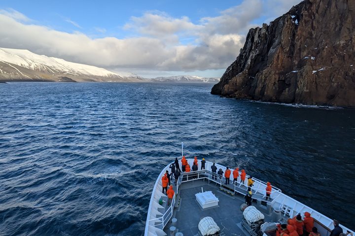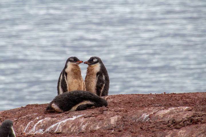 In the afternoon, we took our first steps on the Antarctic continent at Portal Point. We even had our first sighting of Adelie penguins! In the evening, light streamed through the clouds creating a beautiful landscape and illuminating the flukes of humpback whales as we cruised through the area. We could not have asked for a more spectacular day along the peninsula.
