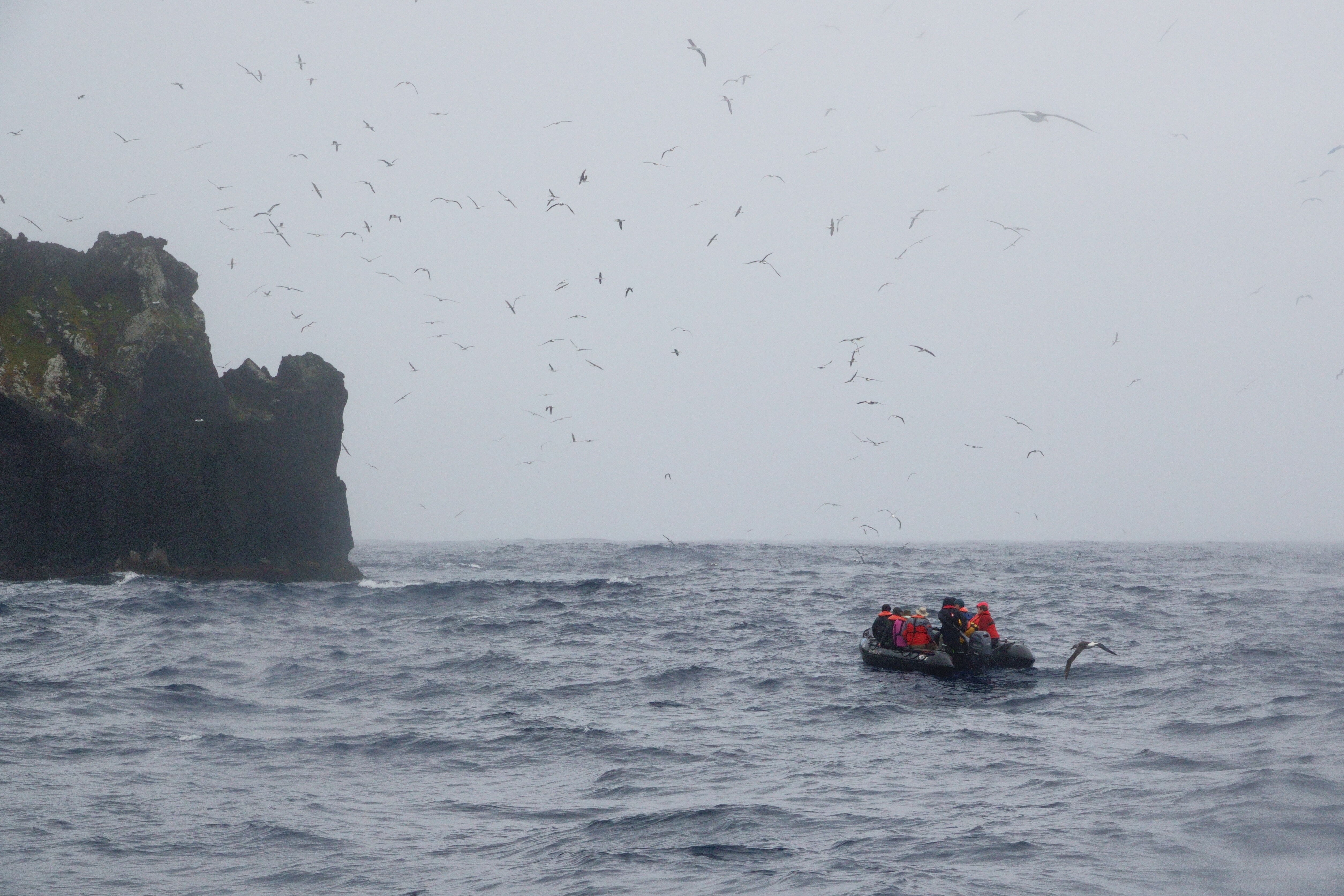 The intrepid adventurers aboard National Geographic Explorer continued their journey across the Drake Passage under a grey sky and fair winds. As the ship approached the Antarctic peninsula, vigilant eyes were rewarded with brief sightings of minke whales and other charismatic wildlife. By midmorning, our explorers had their first sighting of land as the ship reached the South Shetland Islands.