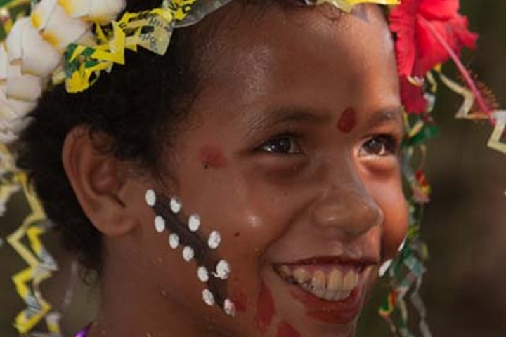 As the National Geographic Orion sailed towards the D'Entrecasteaux Islands Group, we were surrounded by remarkable green mountainous islands. Located at the southeastern end of Papua New Guinea, some of these islands are remnants of magnificent but now extinct volcanoes. An interesting reminder that our expedition is travelling through geological features situated at the enthralling ring of fire or circum-Pacific belt, a direct result of plate tectonics and the movement and collisions of lithospheric plates. Another noteworthy element of this once-dynamic magmatic area is the active thermal springs and mud pools found at Fergusson Island. Boarding our Zodiacs, we navigated through a myriad of healthy coral reef systems and set to explore the remote Dei Dei village and surrounds.