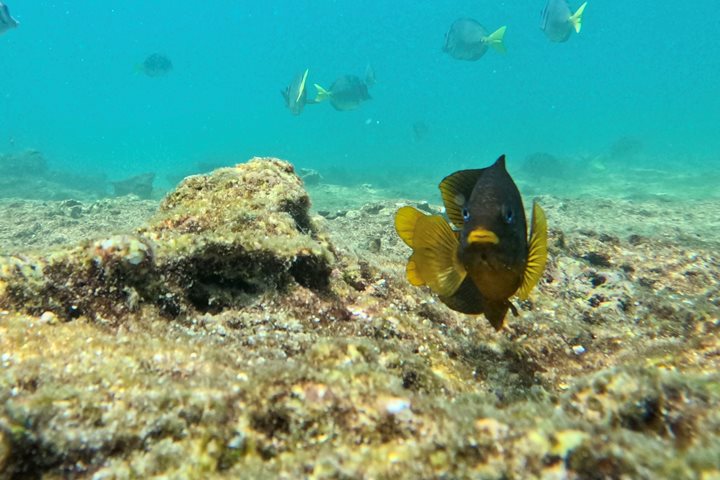 After visiting this beautiful bay, we returned to the ship to prepare for snorkeling activities. Some of the guests decided to go kayaking, and others relaxed on the beach. My group snorkeled from a Zodiac by the cliffs of this island. We found hammerhead sharks, various species of reef fish, golden cow rays, turtles, and other great wildlife. This was definitely a wonderful way to finish our time in the water here in the Galapagos.