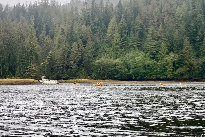 We awoke inside a tranquil cove, eager to drop into kayaks and Zodiacs for our first up close exploration of Coastal British Columbia. Harbor seals surveyed us with giant, adorable eyes, and ravens called out our arrival with guttural croaks and acrobatic dips. Our cruises revealed common mergansers, hooded mergansers, a common loon, ruby-crowned kinglets, Steller jays, Bonaparte’s gulls, and schools of salmon congregating at the mouth of their natal stream.