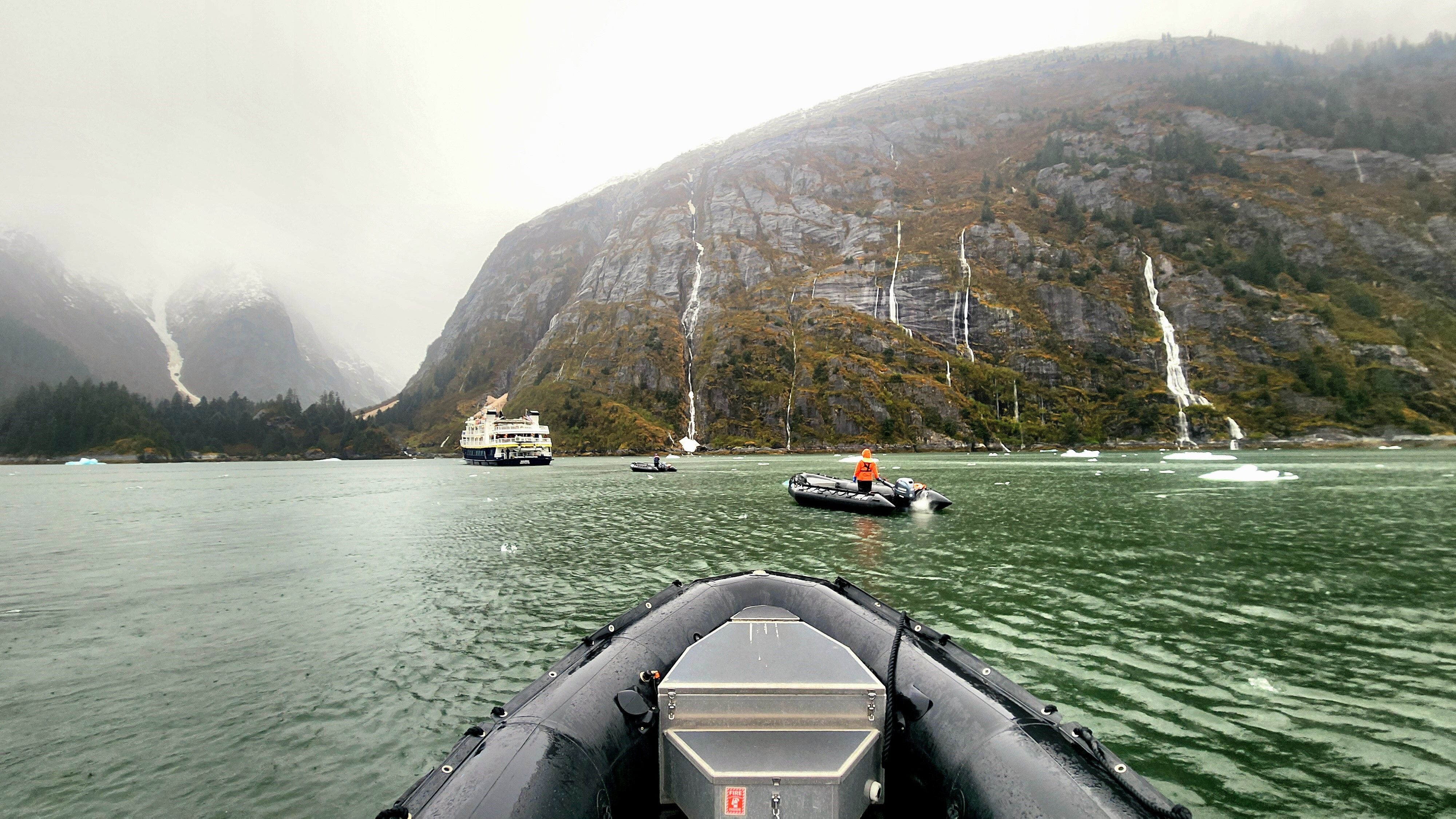 Today was one for the record books. We woke up to a blue-sky day in the breathtaking Glacier Bay National Park. We were immediately brought out to the bow to observe Margerie Glacier from National Geographic Sea Lion. Seeing a tidewater glacier is not something that we will soon forget, and we were lucky enough to witness a few calving events. Observing huge chunks of ice falling hundreds of feet with a thunderous crack is magical.
