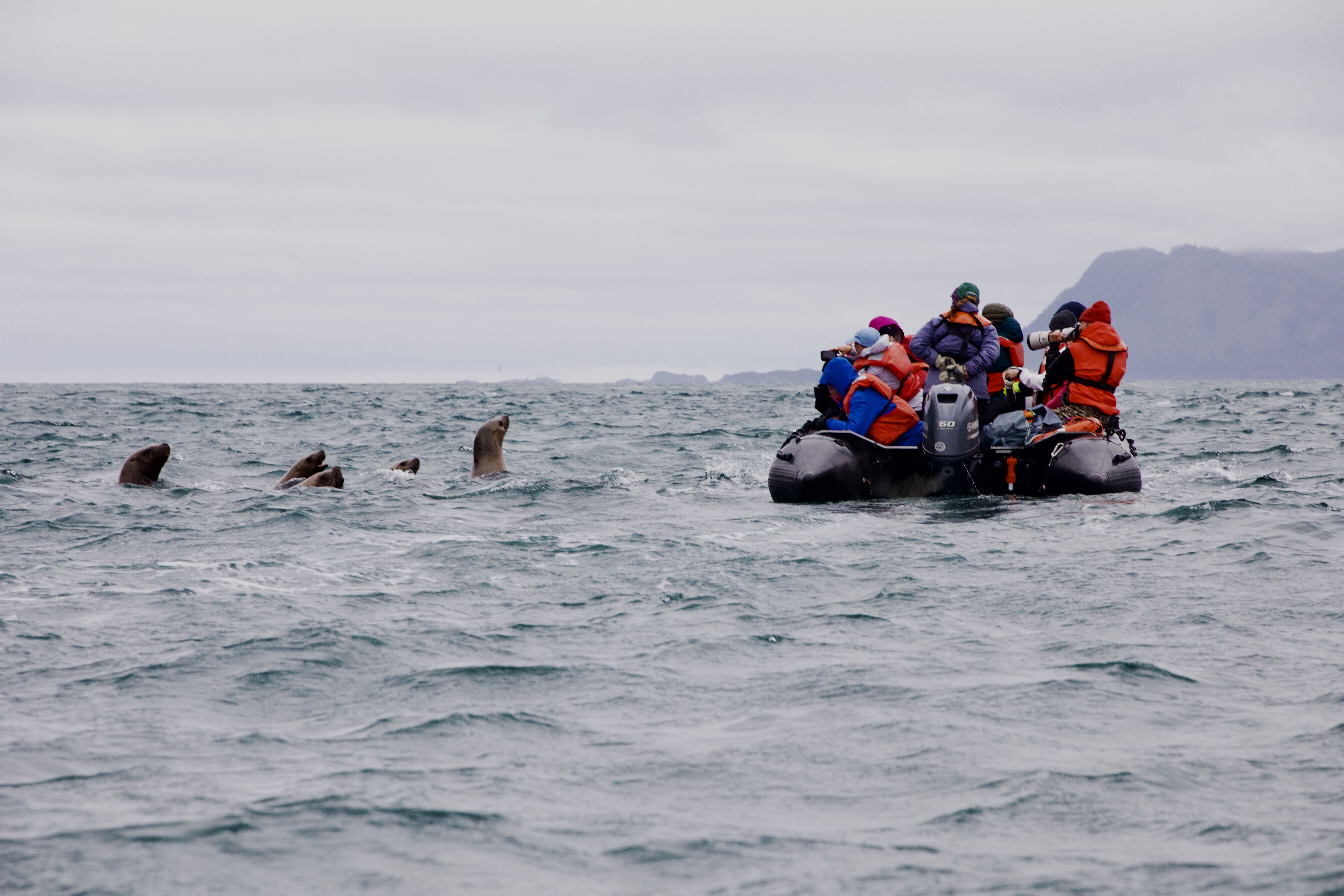 We then continued sailing while listening to a presentation on carbon sequestering by naturalist Jeff Campbell. Then we headed back onto the bow for our final wildlife hotspot of the day, South Marble Island. We immediately saw hundreds of Steller sea lions, breaching humpback whales, a massive bird colony, sea otters, and even more tufted puffins. It was sensory overload and truly an amazing day here in Glacier Bay.