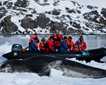 In the afternoon, after a short navigation towards the bases of Darwin volcano, we dropped the anchor at Tagus Cove. At this site we offered deep water snorkeling, kayaking, Zodiac riding and a brisk walk to the top of a spatter cone. Clear skies and a nice breeze made our expedition very pleasant, along with the abundance of wild life found along the shore line. Among other species we foun penguins, flightless cormorants, blue footed boobies, nazca boobies, puffer fish, spotted eagle rays and green sea turtles.