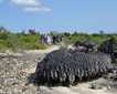 Today our expedition headed toward the two youngest of the Galapagos Islands. With the first beams of sun, early risers tried to find some marine life from the sundeck while we circumnavigated the northern shore of Isabela Island.  The gigantic Ecuador and Wolf volcanoes looked spectacular with colorful lava fields reflecting the colors of the sunrise. After breakfast the captain announced our arrival at the equator and we celebrated with a special ceremony, limbo-ing underneath the Ecuadorian flag.  That was quite entertaining!  After dropping anchor at Punta Vicente Roca, we soon headed on Zodiac rides along the northern coast of Isabela, in search for brown Noddy terns, blue footed boobies, and frigate birds. The sun appeared, warming up this place and marine iguanas did not lose time jumping in the water trying to eat some seaweed.  There were also some Galapagos penguins feeding on small black striped Salemas.  After the Zodiac ride we decided to go snorkeling. We spotted several varieties of fish, but probably the highlight were the Pacific green turtles gently swimming with us and resting in the bottom of the calm bay. Of course, Galapagos penguins and flightless cormorants delighted our guests, who enjoyed swimming with incredible creatures like nowhere else in the world.