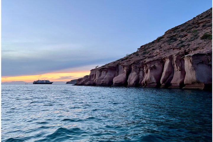 It was the last day of the trip, and National Geographic Venture began the day with an Exhale-led stretch class on the aft deck and a stunning sunrise off the bow. The ship anchored at Isla San Franciscito and everyone headed to shore for a day of adventure. The shore activities started with hikes and tide pooling. Later on, the kayaks and stand up paddle-boards were unloaded, giving us all the chance to play in the water. After lunch snorkeling was a big hit and the day ended as it began, with Exhale-led yoga and a beautiful sunset.