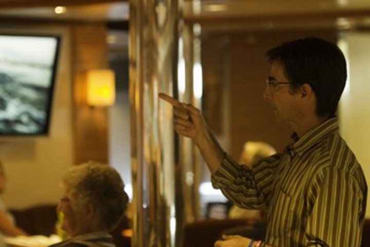 We experienced a very relaxing morning at sea, which allowed us to recuperate from the past two or three days of excursions in Trinidad and Tobago. Because of our late departure last night from Port of Spain, Trinidad, we decided to wait until this morning before conducting our Lifeboat Muster exercise. This also gave us a chance to introduce the full compliment of Lindblad Expeditions staff naturalists and National Geographic lecturers and photographers. There wasn’t a lot of marine life to be seen this morning, apart from a few bottlenose dolphins, flying fish, a magnificent frigatebird, and a lone masked booby.