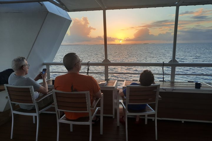 After a wonderful and delicious lunch aboard National Geographic Sea Lion, guests relaxed before a safety briefing on snorkeling in Snake Caye.
