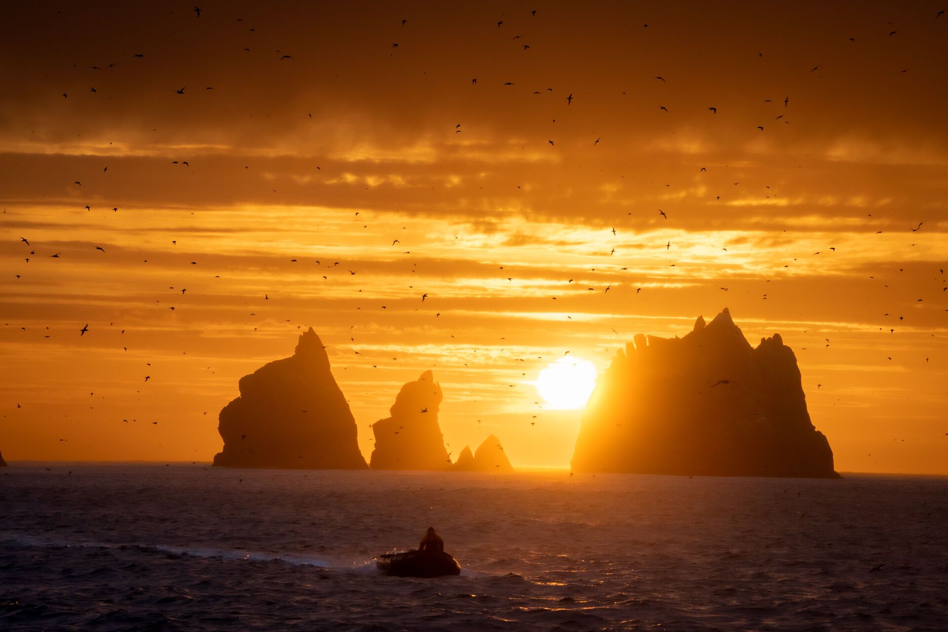 As the day wore on, more and more seabirds began to fly around the ship! During dinner, we looked to the portside and saw Campbell Island growing closer. As we rounded the corner, we moved into Perseverance Harbor and hunkered down for the night.