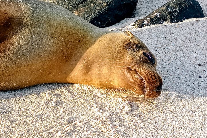 While back onboard for a delicious typical Ecuadorian lunch, we repositioned to our next destination, Cerro Brujo. We enjoyed the beautiful one-mile-long white sandy beach where we had our last opportunity to witness the Galapagos sea lions at sunset.
