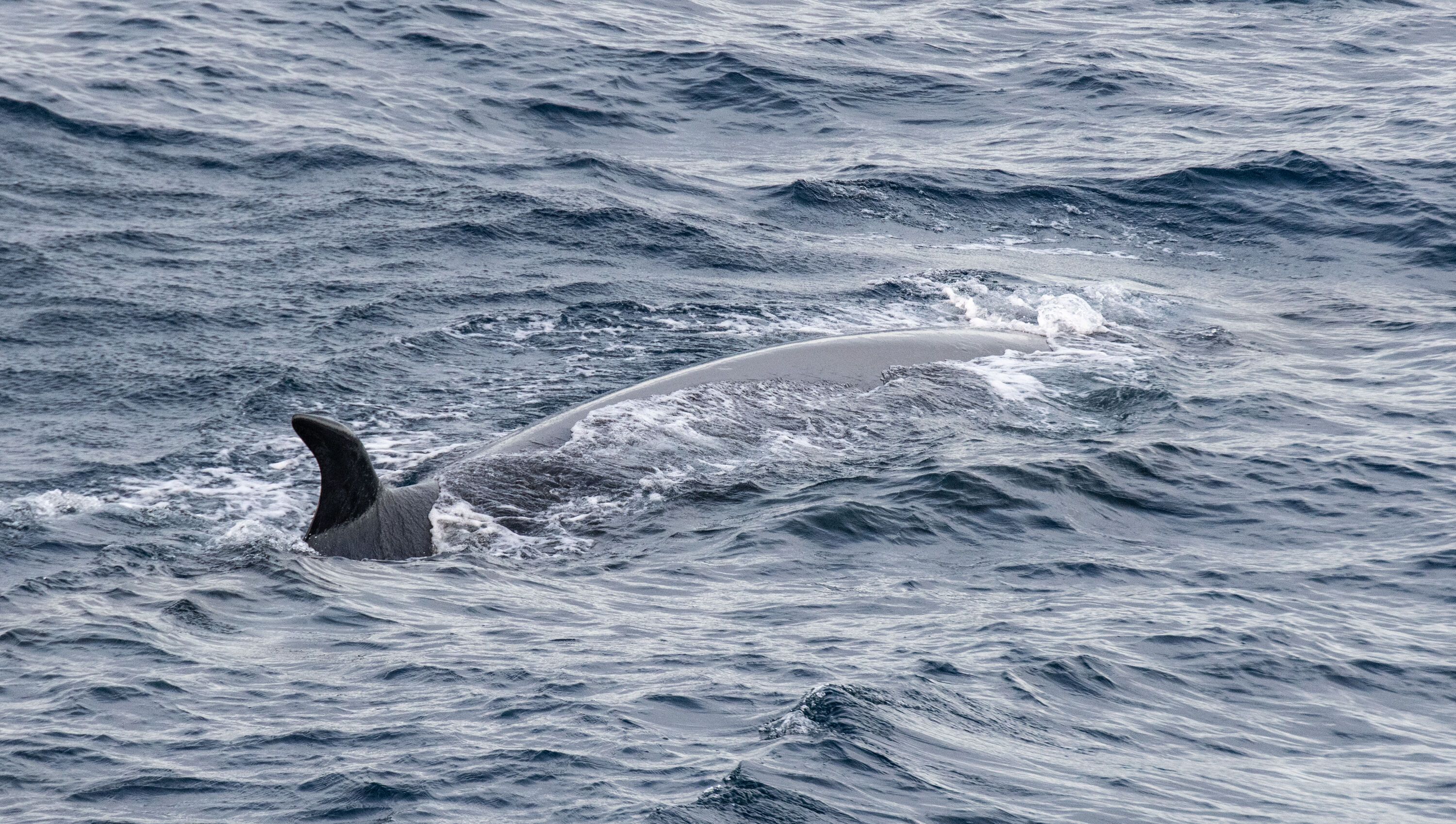 After three wonderful days in New Zealand’s Subantarctic Islands, we are making our way south to Macquarie Island, within the Tasmin State of Australia. Macquarie is a UNESCO World Heritage site, namely for its fascinating geology. The intact seafloor was pushed above sea level by mid-oceanic convergence to form the island. The same ridge that produced Macquarie Island also creates ocean currents that generate biodiverse hotspots, and we were greeted with evidence of just that this morning. During breakfast, we spotted several whale blows in all directions around National Geographic Endurance . We sighted two southern right whales, one of the rarer cetaceans in the Southern Ocean, and numerous sei whales. We were also escorted by a large pod of long-finned pilot whales. The large males and pairs of mothers and calves were just off the bow. They had large, round, shiny heads, white blazes, and beautiful saddles. It was truly a treat to watch them effortlessly move through the water as a unit before disappearing together in one fluid dive. We had two lectures by the photo team. One helped us better understand the phone in our pockets, a.k.a. our smartphone, and the other helped us improve our bird photography. Next up was a lecture on the smell of the ocean by naturalist Conor Ryan. We learned how birds find dense prey aggregations in the vast ocean they call home. The seas were relatively calm, and the fog came and went throughout the day. Albatrosses soared along effortlessly as we moved toward our next destination. The air is getting noticeably cooler. Soon we will lose sight of the vegetation we have been enjoying along with the milder temperatures. We are getting ever closer to the Ross Sea. We are getting closer to Antarctica.