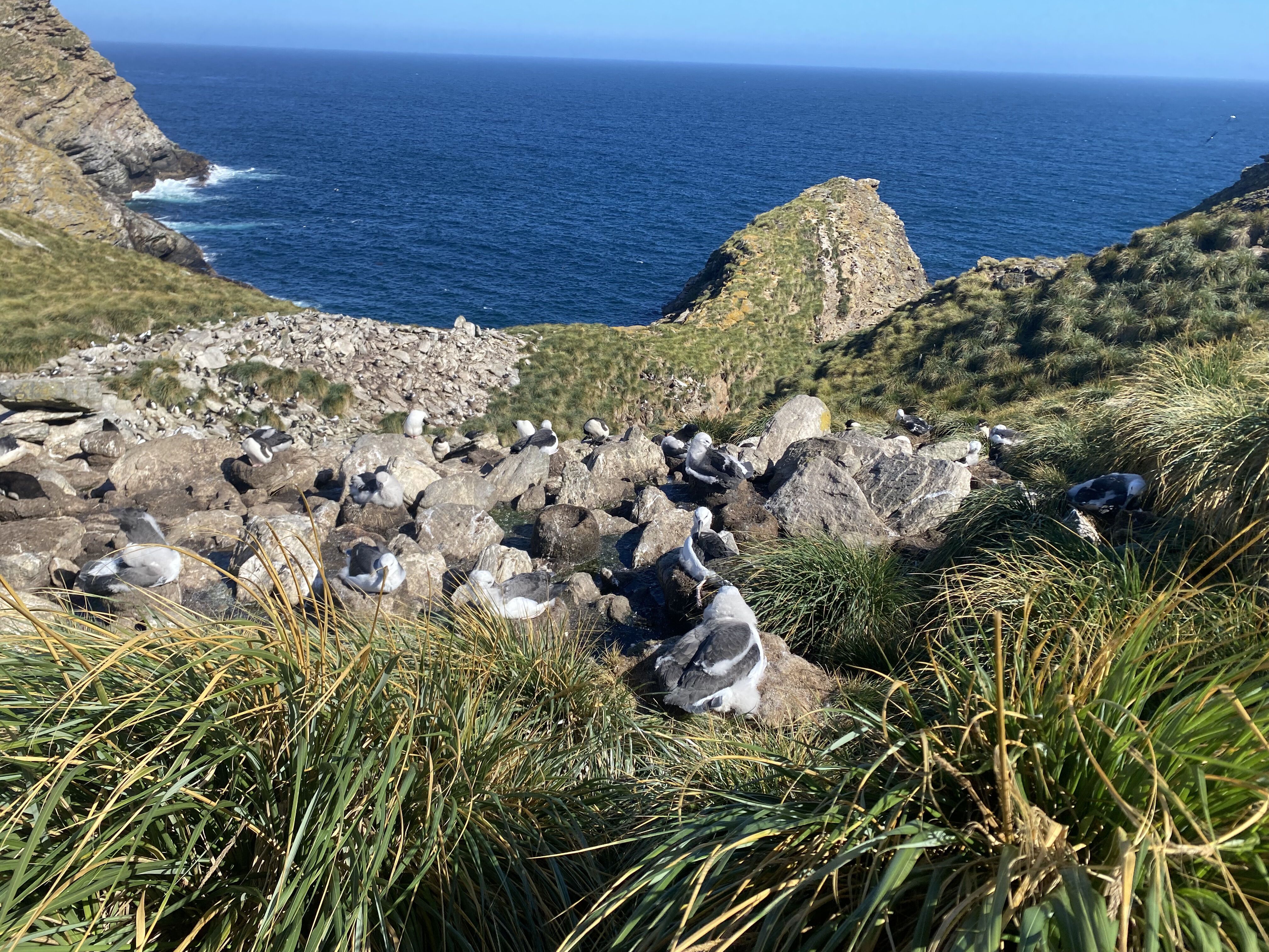 After getting our first glances of the East Falklands last night, we awoke in the west after navigating north of the islands through the night. On approaching Saunders, we were briefly accompanied by Peale’s dolphins, and distant sei whale blows were also seen. We spent the morning around the settlement, getting insights into farm life with shepherding and shearing demonstrations from expedition leader, Russ Evans. This culminated with a barbecue on land, where we were joined by many of the crew and the island’s dogs. We spent the afternoon exploring more of Saunders’ wildlife with a hike past gentoo and Magellanic penguins up to nesting black-browed albatrosses and rockhopper penguins.