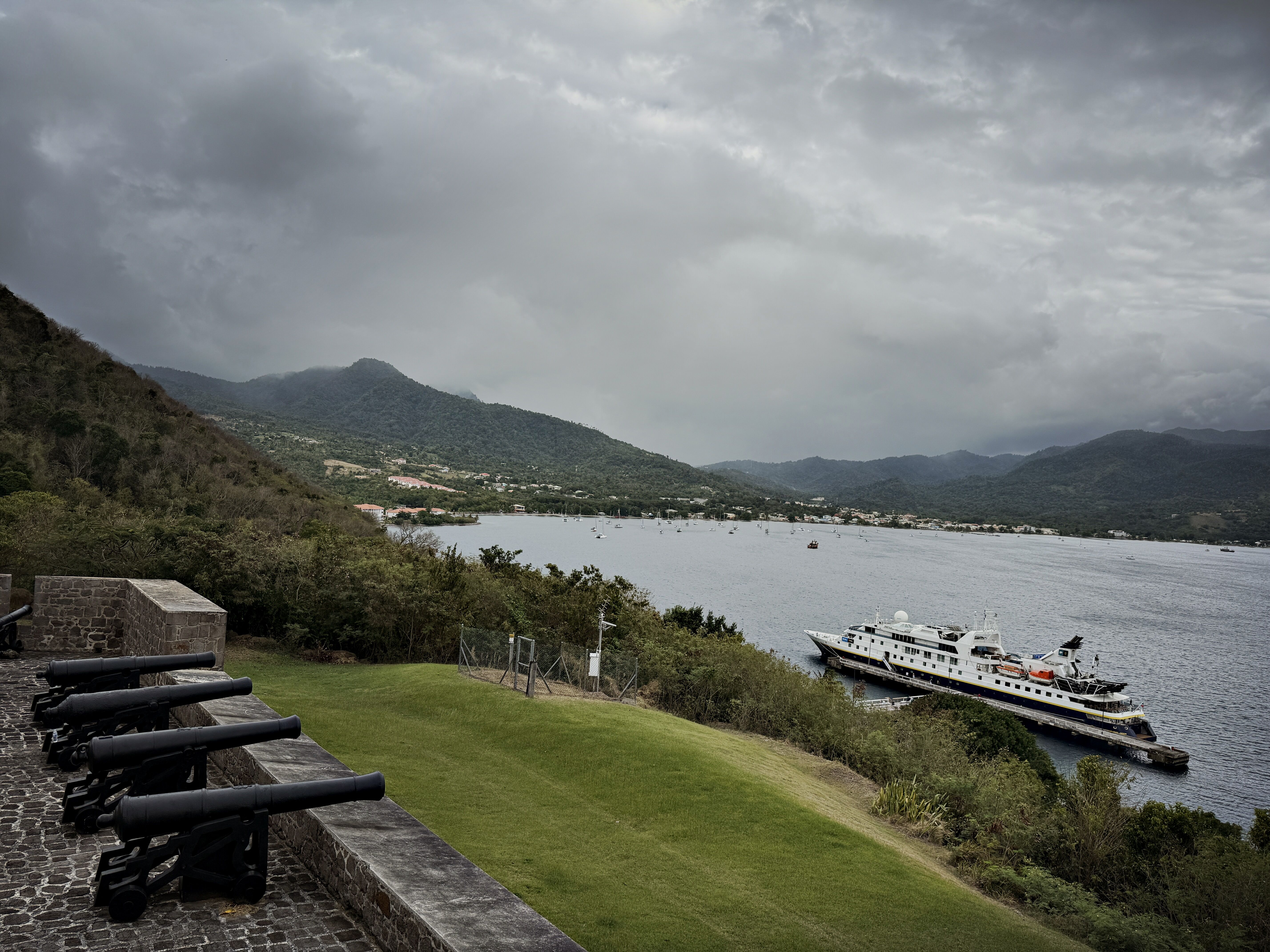 Today, we explored the wild beauty of Dominica, fondly known as “The Nature Island of the Caribbean.” With lush rainforests, volcanic peaks, and more than 300 rivers, it remains one of the Caribbean’s most untouched and captivating destinations. Rooted in Kalinago heritage, colonial struggles between the French and British, and independence in 1978, the island’s history mirrors the depth and diversity of its landscapes. Our morning took us into Morne Diablotin National Park, home to Dominica’s tallest mountain. There, we enjoyed a peaceful 1.5-mile walk along the Syndicate Nature Trail, surrounded by dense rainforest. We kept our eyes peeled for Dominica’s iconic parrots and were lucky to spot a few jaco parrots soaring above the treetops. In the afternoon, we visited Fort Shirley in Cabrits National Park. This restored 18th-century British garrison, once home to over 600 soldiers, now offers sweeping views of Prince Rupert Bay and a powerful glimpse into the island’s colonial past. We wrapped up the day with an informative cocktail hour and recap, a delicious dinner, and the always-anticipated Crew Show. It was a nice mix of nature, history, and fun — a lovely experience on this remarkable island.