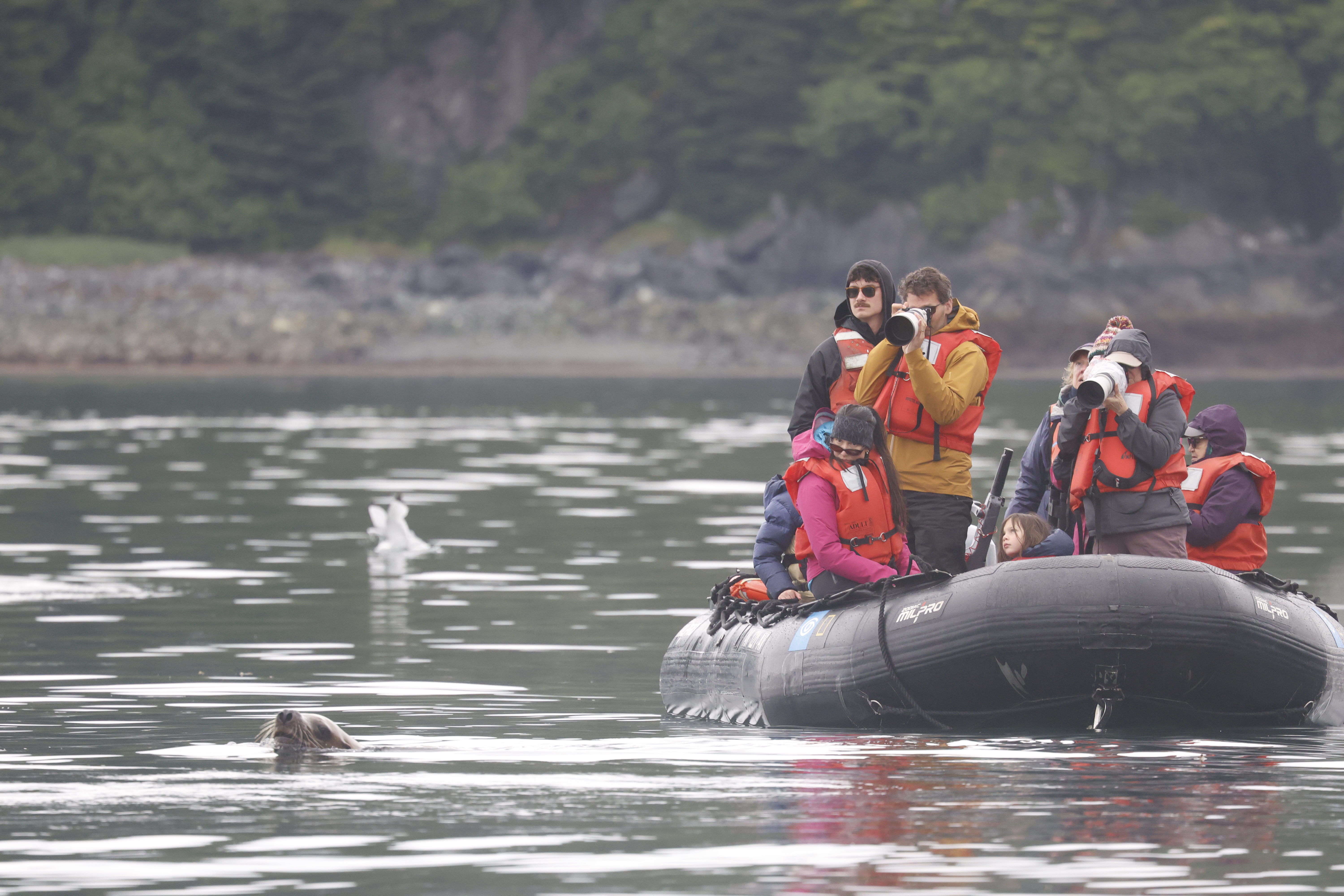 National Geographic Sea Lion made her way through Icy Strait to the confluence of the Inside Passage and the Pacific Ocean this morning. Here lies one of the most special places in Alaska: the Inian Islands. From our Zodiacs, we had a truly expeditionary morning exploring the waterways between the islands. The extreme tides here bring a buffet of food for local wildlife, such as the sea otters, Steller sea lions, harbor seals, and bald eagles we saw this morning. We then made a short trip to Port Althorp, just south of the Inian Islands, and spent the afternoon hiking. The sun was out as we explored the coastline and then headed inland to the magical forest of tall trees, mosses, and ferns. After a crab feast dinner, the bow was the place to be as pods of Dall’s porpoises visited to bow ride the ship. It was a perfect day, encompassing everything it means to travel on an expedition.