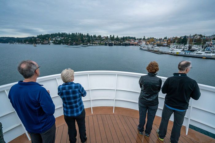 Today was our first day in beautiful British Columbia! After disembarking from the ship, guests had the option to go on a guided tour or spend the day at their leisure. We all were graced with some classic Pacific Northwest weather, which oscillated between sunshine and rain all morning long. Options for tours included a historical walk, a cycling tour, a secret garden tour, an architecture tour, and a tour of the Royal British Columbia Museum. After lunch on the ship, guests embarked on another round of adventures in the sunshine. Appetizer hour was held this evening in the Robert Bateman Gallery, where we all got a chance to get up close with the work of the most famous wildlife painter in Canada. Dinner was held on the ship and followed by a haunted Victoria tour, for the bravest among us.