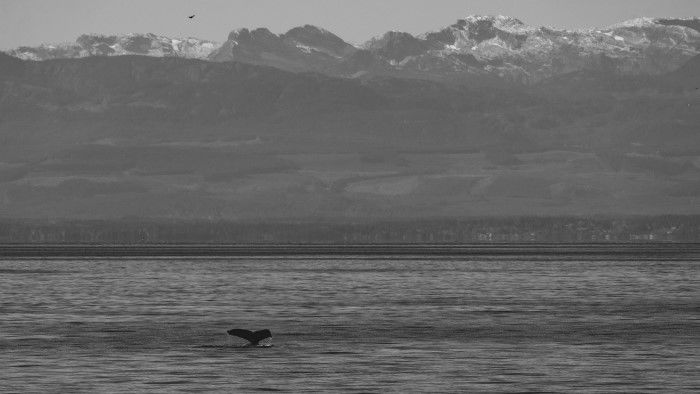 This morning, National Geographic Venture cruised north to the tip of Vancouver Island through Seymour Narrows. It was a misty morning full of birds migrating south and Pacific white-sided dolphins bow-riding the ship. It was a great start to the morning. After a delicious brunch, guests disembarked to walk along the bay to the U’mista Cultural Centre. This is the First Nation’s homeland of the ‘Namgis Nation, who welcomed us with their regalia and museum, gifted with rich history and culture. It’s always a blessing to be welcomed into the hearts and spirits of this community and to witness their dances and songs in their big house potlatch ceremonies. After leaving the dock, National Geographic Venture cruised back south and saw humpback whales off in the foggy afternoon, along with gulls and seabirds galore. Thank you for joining us on another great day in the Pacific Northwest!