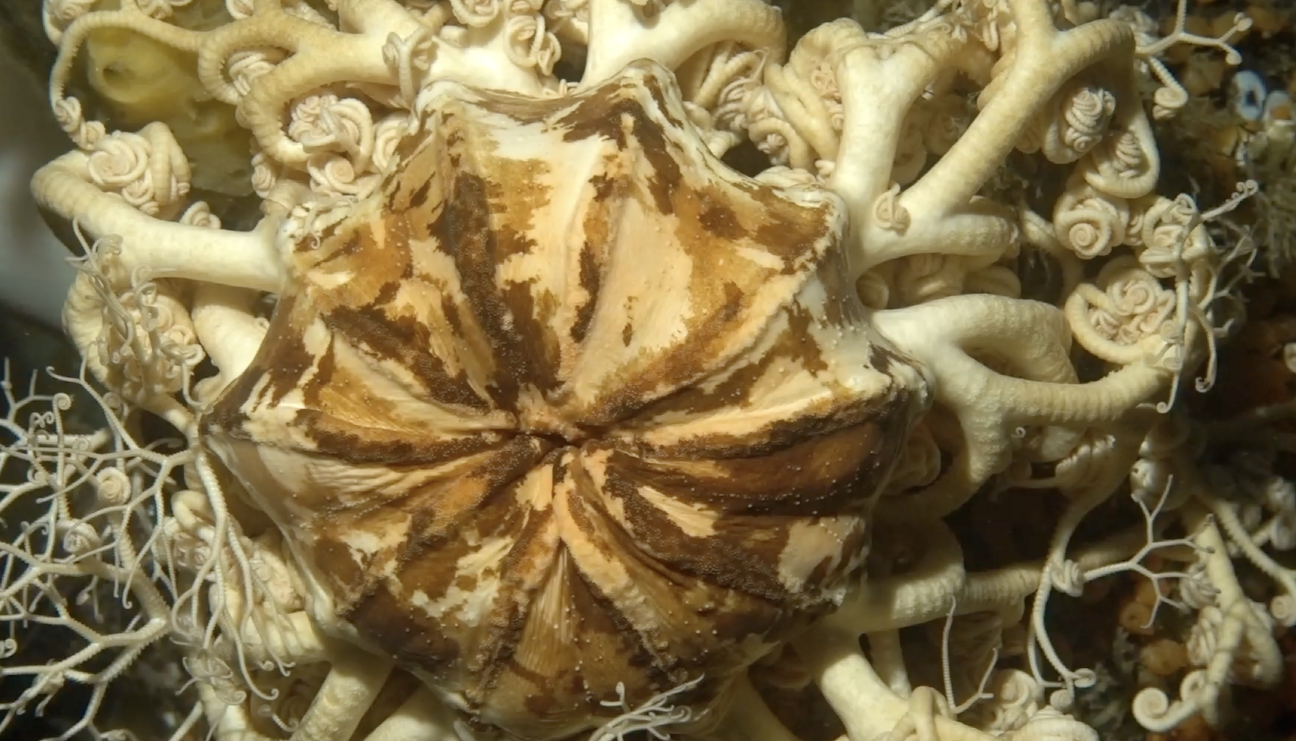 Today we had the privilege of going to Alert Bay. Alert Bay, located on Cormorant Island off the northeastern coast of Vancouver Island in British Columbia, Canada, boasts a rich history rooted in the indigenous cultures of the region. Traditionally inhabited by the 'Namgis First Nation, part of the Kwakwaka'wakw peoples, Alert Bay has long served as a cultural and social hub for these indigenous communities. Totem poles, some of which are the tallest in the world, dot the landscape as silent witnesses to the intricate stories and traditions of the Kwakwaka'wakw. In the late 19th and early 20th centuries the town grew as a fishing and cannery center, attracting settlers and industry. However, it also became a site of cultural conflict during the era of residential schools, institutions aimed at assimilating indigenous children into Euro-Canadian culture. The U'mista Cultural Centre, established in the town in the latter half of the 20th century, now stands as a testament to the resilience and revival of Kwakwaka'wakw culture, showcasing repatriated artifacts and hosting cultural events. Lindblad guests had the opportunity to visit this site in addition to attending a Big House Ceremony. Big House ceremonies are an important part of Alert Bay culture, from weddings to deaths. While guests had a delightful ceremony, the undersea team submerged themselves under the dock for a successful dive! Here they were able to see an abundance of giant plumose anemones that covered the pier columns. They were also greeted by a delightful group of sea creatures including candied striped shrimp, basket stars, decorator crabs, and coon stripe shrimp. It was overall a very enriching visit to Alert Bay.